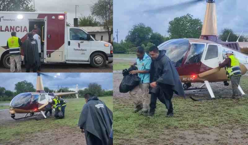 Activa Plan Tamaulipas de la SSPT helicópteros para evacuar a población afectada por creciente del río Purificación.