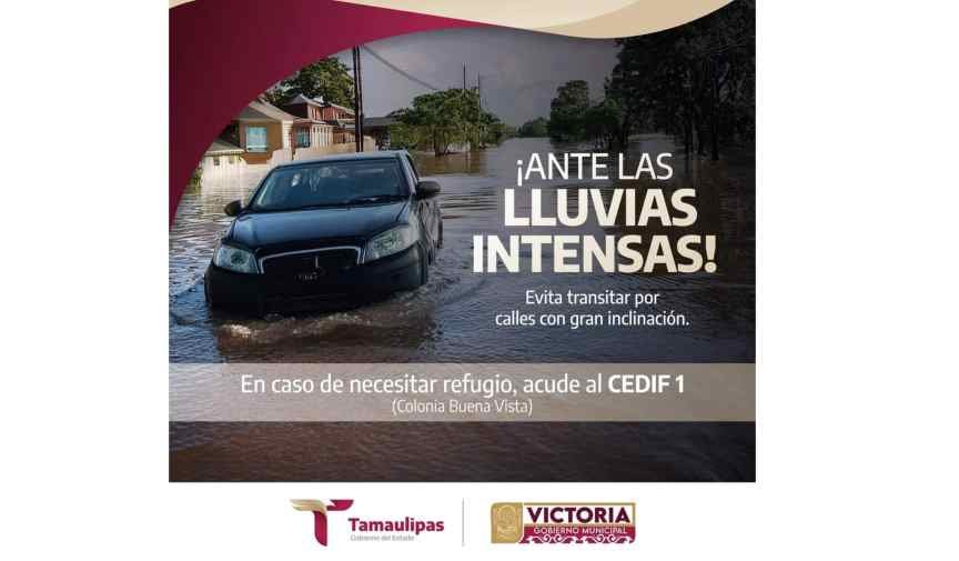Alerta PC, continuarán lluvias intensas en Victoria.