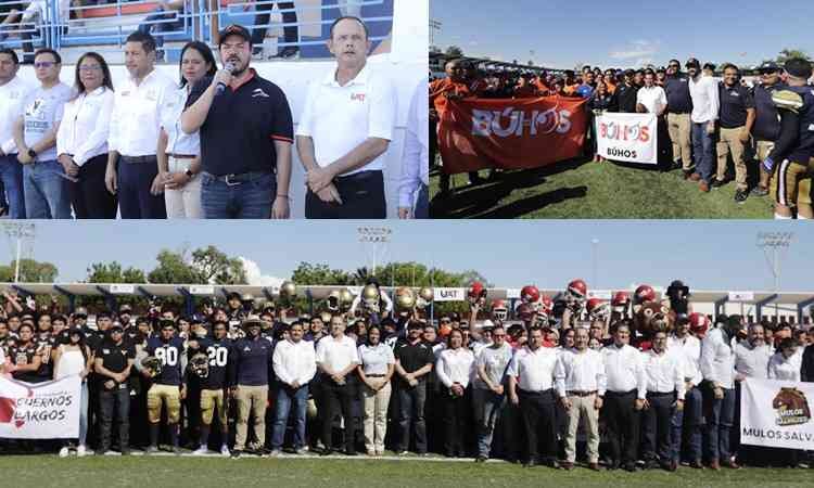 El Rector de la Universidad Autónoma de Tamaulipas (UAT), C.P. Guillermo Mendoza Cavazos, inauguró la Temporada 2023 de la Liga Universitaria de Futbol Americano (LUFA UAT) Categoría Novatos, en el escenario del Estadio Olímpico Eugenio Alvizo Porras del Centro Universitario Victoria.