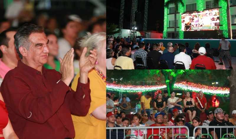 Como parte de la conmemoración de las Fiestas Patrias, la pelea por el campeonato de los Supermedios se siguió a través de pantallas gigantes instaladas en la plaza Juárez, junto al escenario en donde este domingo el gobernador Américo Villarreal encabezará la ceremonia del Grito de Independencia.