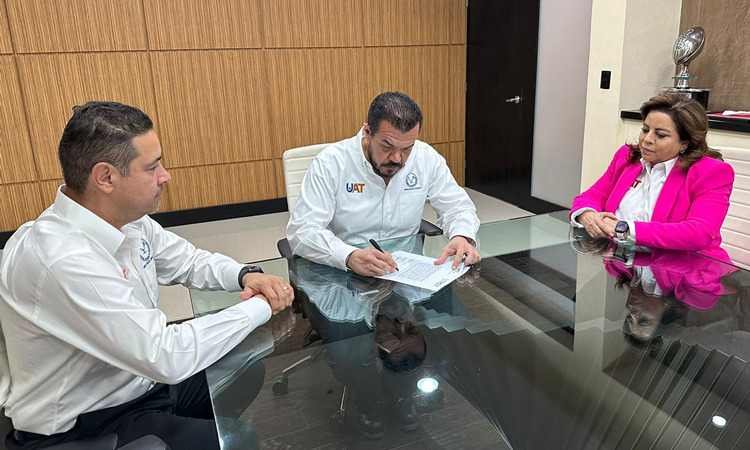 Por parte de la UAT, el rector Guillermo Mendoza firmó el documento en la sala de juntas del Centro de Gestión del Conocimiento en Ciudad Victoria, asistido por el Mtro. Mauricio Pimentel Torres, secretario de Vinculación, y la Dra. María de Jesús Hernández Rangel, directora de Relaciones Internacionales.
