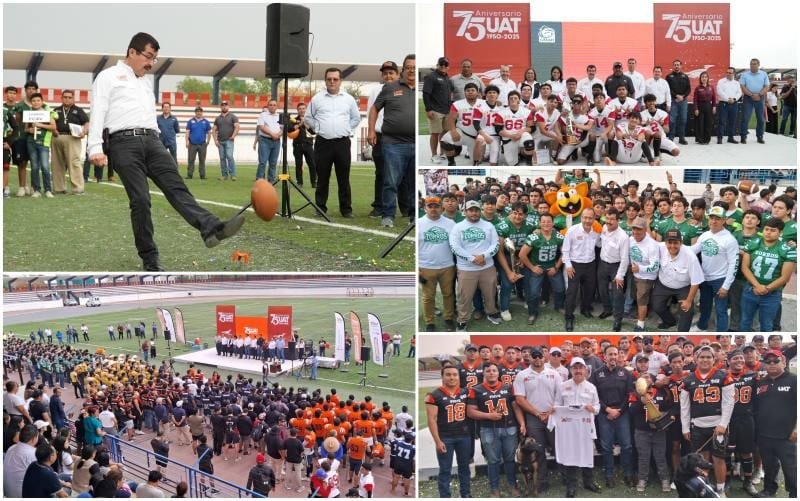 El rector de la Universidad Autónoma de Tamaulipas, Dámaso Anaya Alvarado, inauguró la tarde de este jueves el torneo número 44 de la Liga Universitaria de Futbol Americano de la UAT (LUFAUAT) categoría intermedia y juvenil AA.