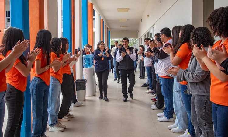 Hizo un recorrido por las aulas donde, además de sostener reuniones con la planta docente y personal administrativo, constató el trabajo del alumnado en las diferentes actividades de fomento a las ciencias, la lectura y de vinculación con la comunidad, así como avances en la iniciativa de grupos bilingües, que busca enriquecer la formación de nivel medio superior.