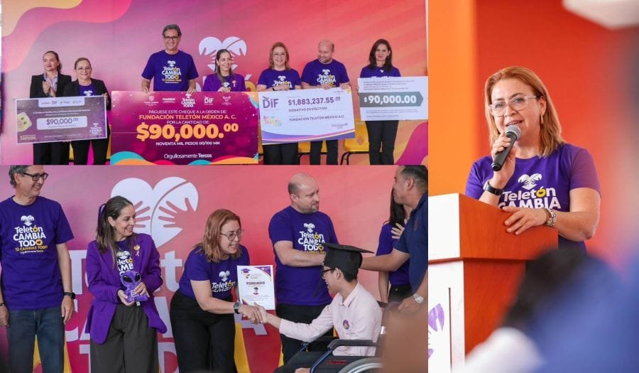 - El Sistema DIF Tamaulipas entregó un donativo de $1,883,237.55, resultado del boteo Teletón; los recursos apoyarán la construcción del CRIT número 26 en Colima y los tratamientos de niñas, niños y adolescentes atendidos por la fundación.