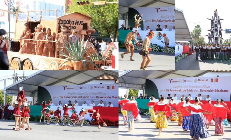 El pueblo de Tamaulipas se unió a la conmemoración del 114 Aniversario del Inicio de la Revolución Mexicana, con la realización del tradicional desfile cívico, deportivo y militar, encabezado por el gobernador Américo Villarreal Anaya, en el que se contó con la participación de más de 2,800 alumnos y 300 elementos de las Fuerzas Armadas.