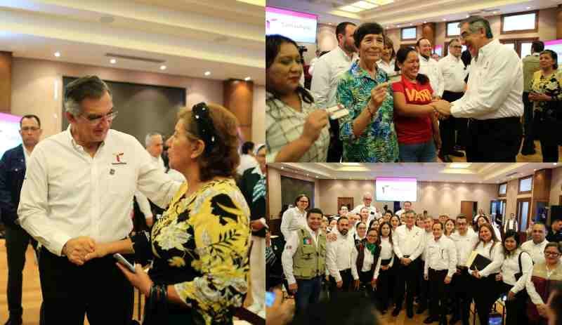 En un enlace desde el Salón Independencia de Palacio de Gobierno a la conferencia mañanera encabezada por el presidente Andrés Manuel López Obrador y por el director general del IMSS, Zoé Robledo, el gobernador Américo Villarreal entregó de manera simbólica las credenciales a seis beneficiarias que, a partir de hoy, tienen garantizada, al igual que 1.5 millones de tamaulipecos y tamaulipecas, la atención médica, los medicamentos, estudios clínicos, y, de ser necesario, una cirugía; por primera vez, asimismo, contarán con un expediente clínico electrónico.