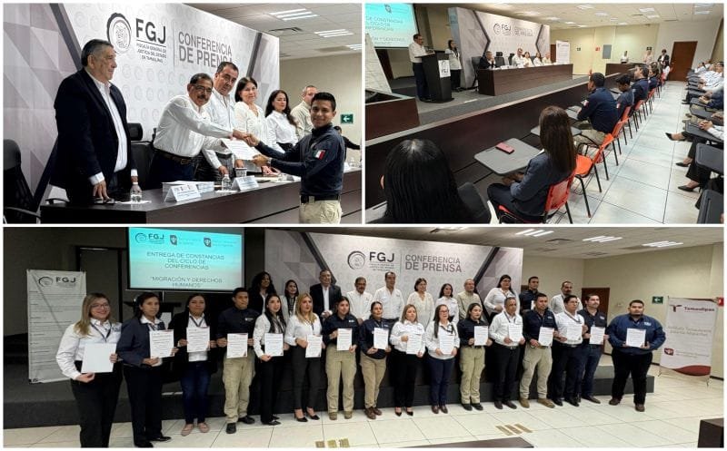 El evento se llevó a cabo en la Sala de Juicios Orales de la propia FGJ y contó con la presencia del director general del ITM, Juan José Rodríguez Alvarado; el vicefiscal de Alto Impacto y de Violaciones a Derechos Humanos, Jesús Miguel Gracia Riestra; la presidenta de la Comisión Estatal de Derechos Humanos de Tamaulipas, María Tadie Garza Guerra; el subsecretario de Derechos Humanos y Articulación Social de la SEBIEN, Esteban Etienne; la fiscal especializada en la Investigación de Derechos Humanos, Mariana Ramírez Solano, y el director general de Asuntos Jurídicos y de Derechos Humanos de la FGJ, Craig López Olguín.