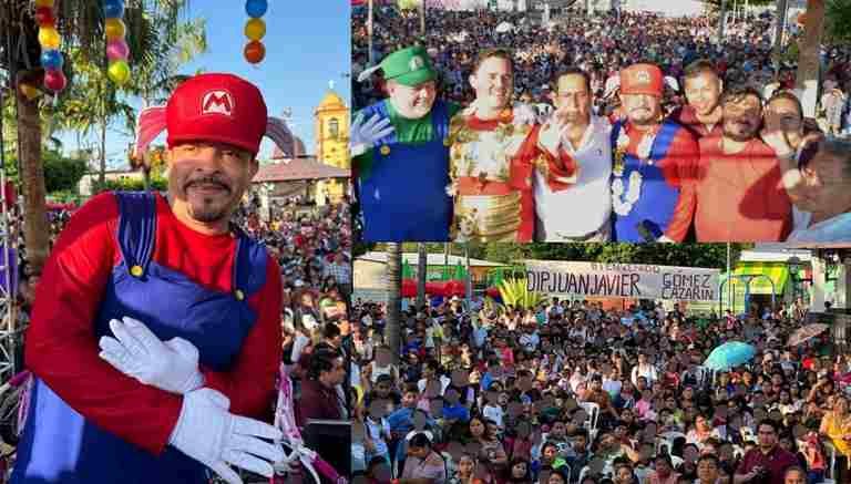 Vestidos como los populares personajes del videojuego Mario Bros., “Mario” y “Luigi”, además de “Iron Man”, hicieron entrega de presentes, a todos y cada uno de los menores que asistieron a recibir un juguete con motivo del Día de la Niñez, celebrado este 30 de abril.