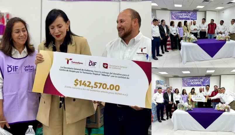 Ciudad Victoria, Tamaulipas.- En un gesto de solidaridad y compromiso con las familias afectadas por la reciente tormenta tropical Alberto, el secretario general de Gobierno, Héctor Joel Villegas González, encabezó la entrega de un significativo donativo por un total de $142,570 al Centro de Acopio del DIF Tamaulipas. Este aporte se destinará directamente a brindar asistencia a los damnificados por este fenómeno hidrometeorológico.