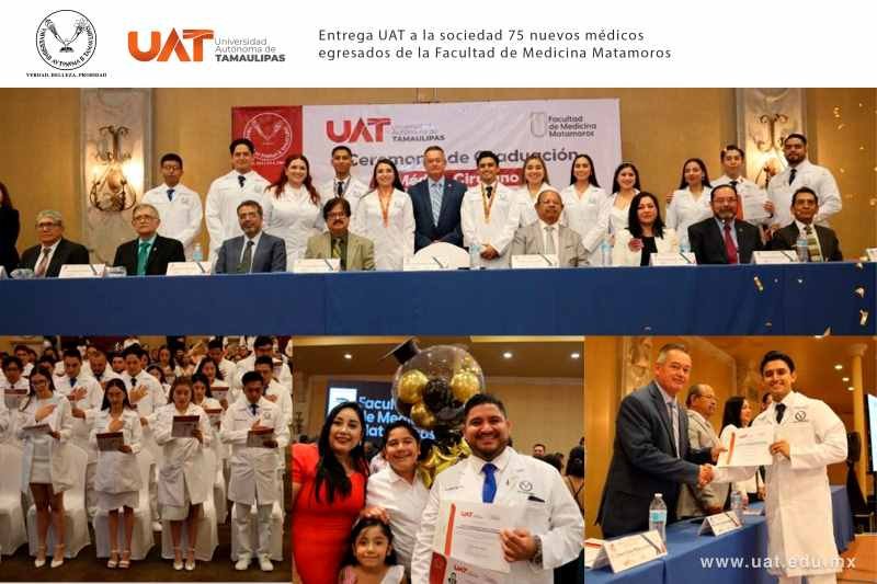 Entrega UAT a la sociedad 75 nuevos médicos egresados de la Facultad de Medicina Matamoros.