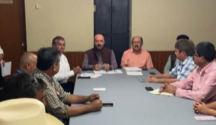 Gustavo Díaz Ordaz, Tamaulipas.- El secretario de Recursos Hidráulicos para el Desarrollo Social, Raúl Quiroga Álvarez, junto a Armando Silva Escobedo, jefe del Distrito de Riego 026 Bajo Río San Juan, encabezó la entrega de apoyos a los productores de este distrito de riego, por concepto de aguas tratadas no retornadas a la presa Marte R. Gómez.