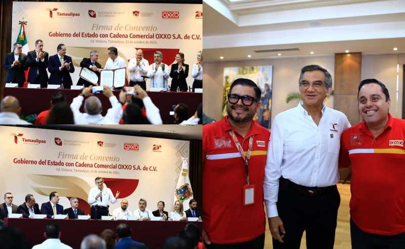 El gobernador Américo Villarreal Anaya presidió la firma del convenio de colaboración con la Cadena Comercial Oxxo, a fin de reforzar la seguridad y mejorar la respuesta ante situaciones de emergencia, mediante la implementación de acciones clave con el propósito de prevenir el delito a través de una mayor vigilancia, el uso de tecnología y la coordinación eficaz con las instituciones de seguridad pública.