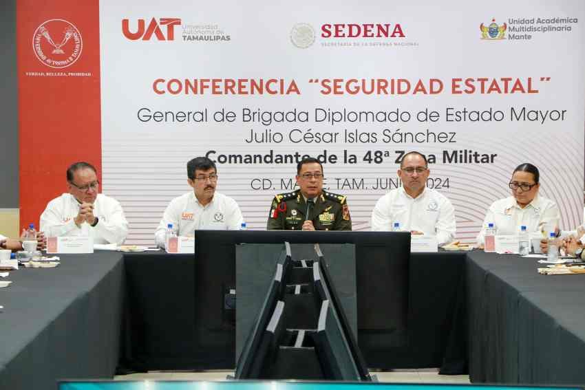 La Universidad Autónoma de Tamaulipas (UAT) organizó una conferencia sobre las funciones y el desempeño de la Secretaría de la Defensa Nacional (SEDENA), en el marco de la Reunión de Seguridad que se realizó en la Unidad Académica Multidisciplinaria Mante.