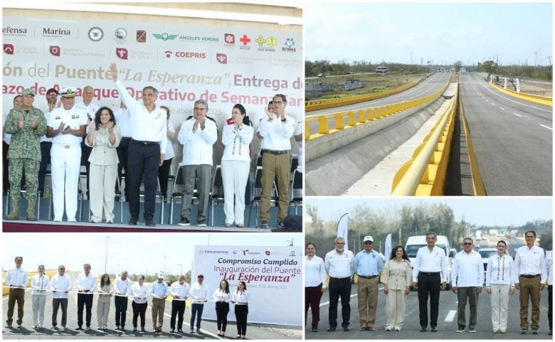 El gobernador Américo Villarreal Anaya inauguró el puente «La Esperanza», una obra que permaneció en el abandono por casi 15 años y aseguró que esta construcción se asemeja al futuro de Tamaulipas porque tiene «bases sólidas y firmes».