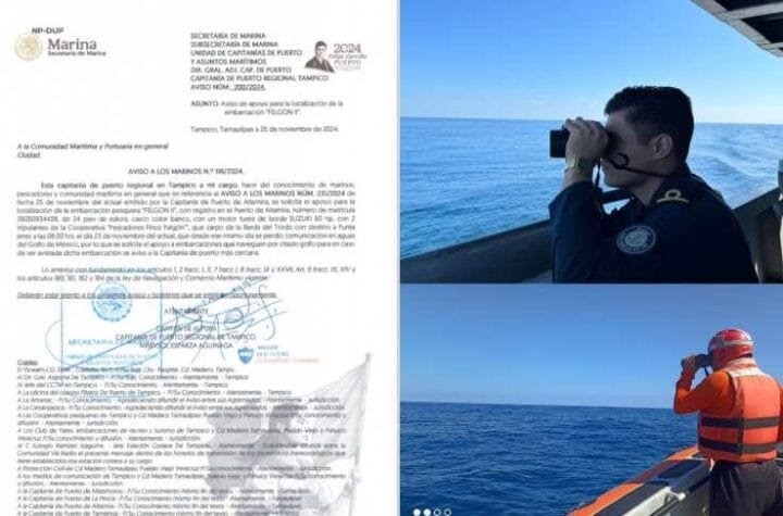 La Capitanía de Puerto Regional en Tampico hizo del conocimiento de marinos, pescadores y...