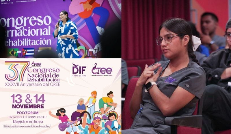 En el marco del trigésimo séptimo aniversario del Centro de Rehabilitación y Educación Especial (CREE), el Sistema DIF Tamaulipas que preside la doctora María de Villarreal invita a profesionales del área médica y a la población en general a participar en el XXXVII Congreso Nacional de Rehabilitación, que se llevará a cabo los días 13 y 14 de noviembre en el Polyforum de la capital del estado.