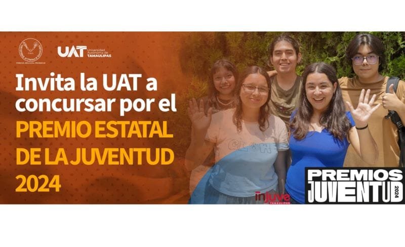 La Universidad Autónoma de Tamaulipas (UAT) hace extensiva la invitación a participar en la convocatoria del Premio Estatal de la Juventud 2024, una iniciativa del Gobierno del Estado a través de la Secretaría del Trabajo y Previsión Social y el Instituto de la Juventud de Tamaulipas, que busca reconocer el talento y contribuciones de las y los jóvenes en nuestra sociedad.
