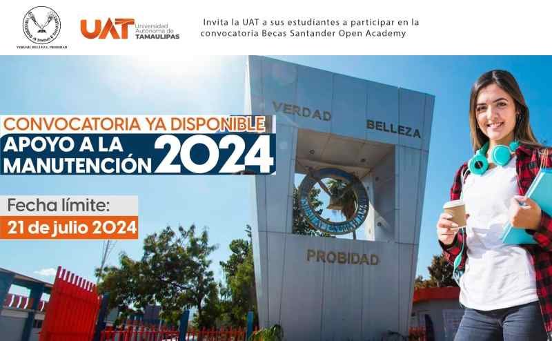 La Universidad Autónoma de Tamaulipas (UAT) invita a su comunidad estudiantil a participar en la convocatoria de apoyo de manutención 2024, ofrecida por Santander Open Academy.