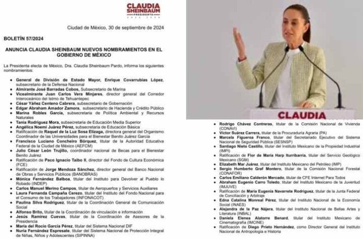 La Presidenta electa Claudia Sheinbaum anunció la tarde de este lunes 30 de septiembre,...