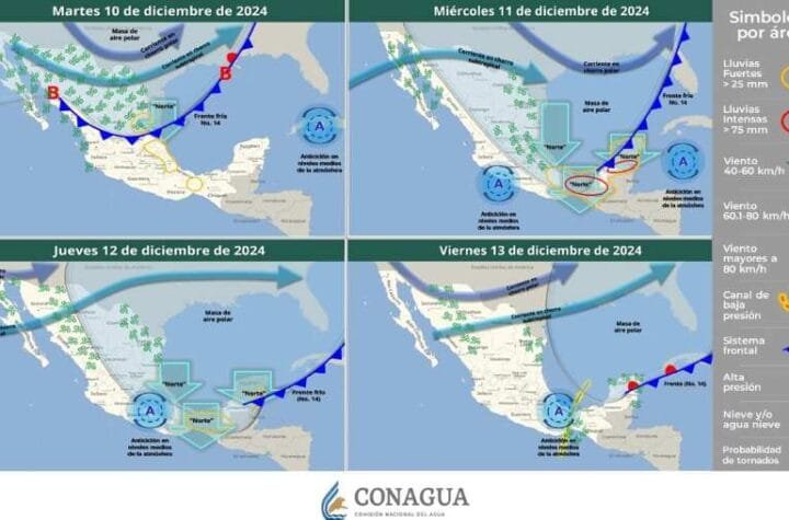 El frente frío número 14 traerá lluvias muy fuertes en Tamaulipas y otros estados...