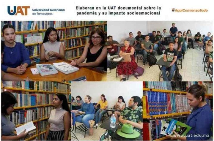 Estudiantes de la Universidad Autónoma de Tamaulipas (UAT) trabajan en la elaboración del documental...