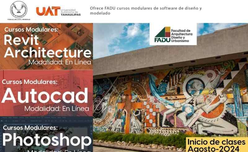 La Universidad Autónoma de Tamaulipas (UAT); a través de su Facultad de Arquitectura, Diseño y Urbanismo; ofrece una serie de cursos modulares en línea enfocados en AutoCAD, Photoshop y Revit Architecture, diseñados para proporcionar habilidades clave en el manejo de herramientas digitales esenciales en la industria de la arquitectura y el diseño.