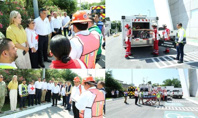 En este simulacro acompañaron al gobernador el coordinador estatal de Protección Civil, Luis Gerardo González de la Fuente; la delegada estatal de la Cruz Roja en Tamaulipas, Graciela Guerra de Araujo; el secretario general de Gobierno, Héctor Joel Villegas González; el secretario de Seguridad Pública, Sergio Chávez García; y el secretario ejecutivo del Sistema Estatal de Seguridad Pública, Jorge Cuéllar Montoya.