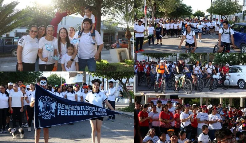 En el marco de las Jornadas por la Paz y contra las Adicciones, impulsadas a nivel nacional por la presidenta Claudia Sheinbaum Pardo y respaldadas en Tamaulipas por el gobernador Américo Villarreal Anaya, se llevó a cabo la actividad “Día de Muertos: Rodada y Carrera por la Paz y contra las Adicciones”, con la participación de instituciones formadoras de docentes.