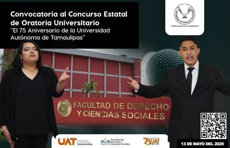 La Universidad Autónoma de Tamaulipas (UAT) celebrará, el próximo 13 de mayo, el Concurso Estatal de Oratoria Universitario, organizado por la Facultad de Derecho y Ciencias Sociales del Campus Tampico (FADYCS) con motivo de celebrar el 75 aniversario de la fundación de la máxima casa de estudios del estado.