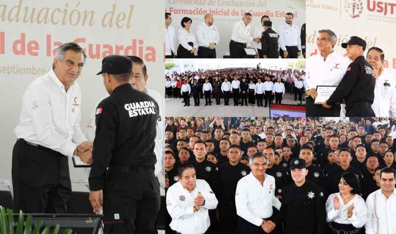 El gobernador Américo Villarreal Anaya presidió la ceremonia de graduación de 112 cadetes que concluyeron el Curso de Formación Inicial para Policía de Proximidad de la Guardia Estatal y los exhortó a conducirse con apego a los principios de verdad, justicia y honestidad.