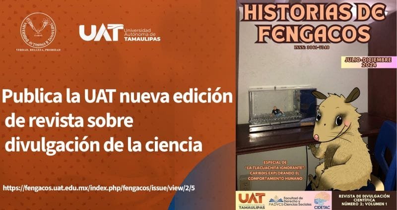 La Facultad de Derecho y Ciencias Sociales Tampico de la Universidad Autónoma de Tamaulipas (UAT), junto con el Centro de Investigación y Desarrollo Tecnológico Aplicado al Comportamiento (CIDETAC), lanzó el más reciente número de su revista de divulgación científica “Historias de FENGACOS”.