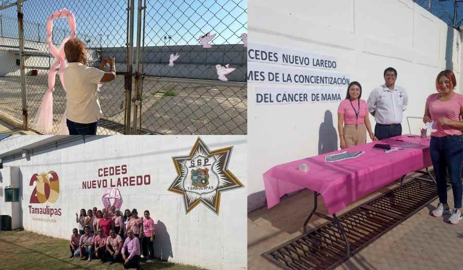 Nuevo Laredo, Tamaulipas.- Entre las actividades conmemorativas del ‘’Mes Rosa’’, el Centro de Ejecución de Sanciones (CEDES) de Nuevo Laredo realizó una campaña de concientización sobre la detección oportuna del cáncer de mama.