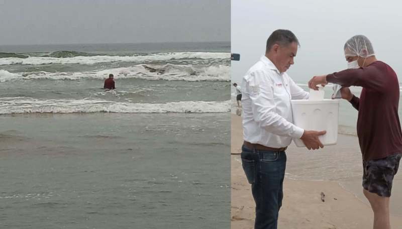 Personal de la Comisión Estatal para la Protección contra Riesgos Sanitarios, realizó la mañana de este miércoles la toma de muestra del agua de playa Miramar para analizarla y determinar su calidad, parámetros y normas oficiales por la presencia de Coleiformes en la costa, por lo que dicha muestra corresponde a un litro de agua de mar que será enviada a laboratorio central en Ciudad Victoria, Tamaulipas.