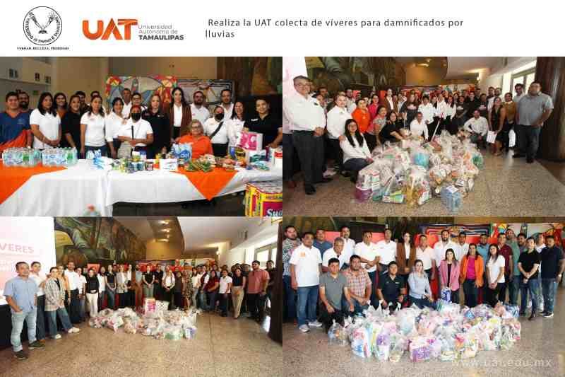 La Universidad Autónoma de Tamaulipas (UAT) concluyó la etapa inicial de su colecta de víveres en apoyo a las personas afectadas por las fuertes lluvias en nuestra entidad con la exitosa recopilación de donativos de las diferentes dependencias administrativas, facultades, escuelas y unidades académicas del Campus Victoria.