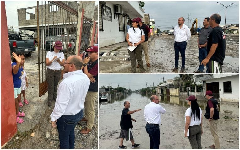 La secretaria de Bienestar del Gobierno de México, Ariadna Montiel Reyes, recorre este domingo colonias afectadas por las lluvias en esta ciudad, en donde constata los daños que sufrieron en su patrimonio las familias reynosenses.