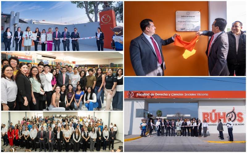 Reafirmando su compromiso con el crecimiento académico y la mejora de la infraestructura universitaria, el rector de la Universidad Autónoma de Tamaulipas (UAT), Dámaso Anaya Alvarado, recorrió la Facultad de Derecho y Ciencias Sociales Victoria (FDCSV), donde inauguró diversas obras y sostuvo un encuentro con la comunidad de esta casa de estudios.