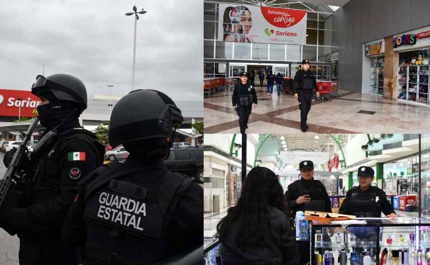 Debido a la alta afluencia de compradores, elementos de esta corporación realizan recorridos de seguridad y vigilancia en diferentes plazas y zonas comerciales.
