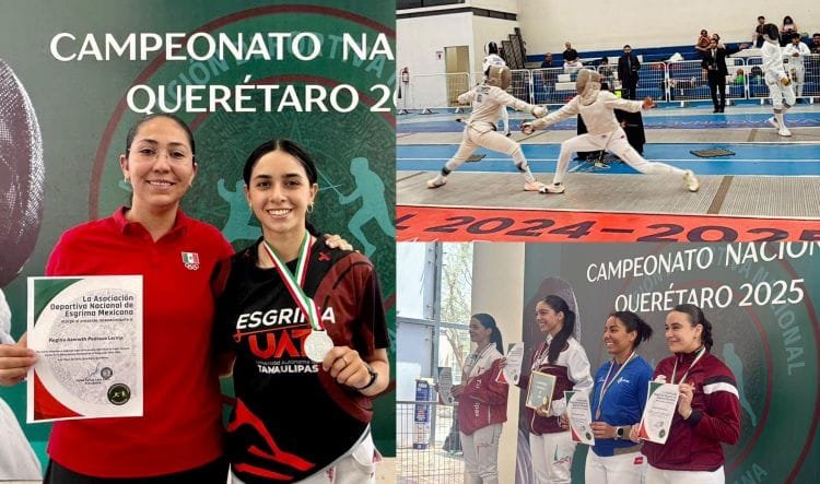 Con una actuación excepcional, la estudiante de la Universidad Autónoma de Tamaulipas (UAT), Regina Azeneth Pedraza Lerma, se consagró como una de las máximas figuras del Campeonato Nacional de Esgrima 2025, celebrado en Querétaro, al alzarse con la medalla de plata en Sable Individual y la medalla de oro en Sable por Equipos, reforzando su trayectoria como referente del deporte nacional.