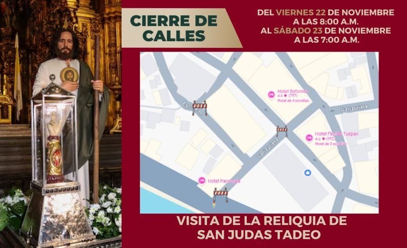 El operativo incluye el cierre de las calles Escuela Médico Militar y Garizurieta (entre la Av. Juárez y el bulevar Jesús Reyes Heroles) a partir de las 8:00 de la mañana del viernes 22 de noviembre, reabriendo la circulación el sábado 23 a las 7:00 a.m.