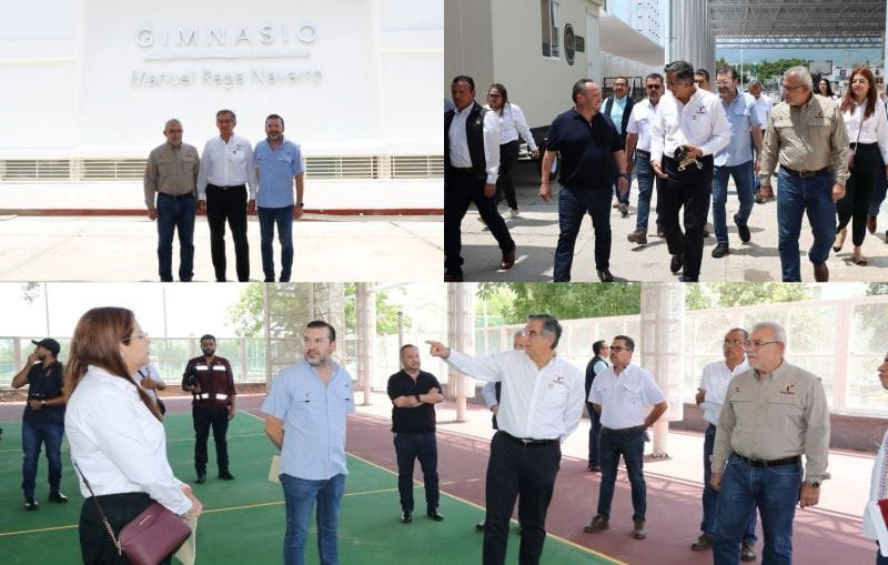 Villarreal Anaya también constató la rehabilitación del gimnasio Manuel Raga Navarro, donde se llevan a cabo acciones diversas como la colocación de duela de maple en cancha de basquetbol profesional, rehabilitación de puertas metálicas y de aluminio, cambio de luminarias, instalación de un sistema de ventilación y extracción de aire, así como aplicación de sistema aislante térmico en la cubierta de lámina en el exterior. Estos trabajos suman un monto de 6 millones 62 mil 764 pesos y tienen un 93 por ciento de avance.