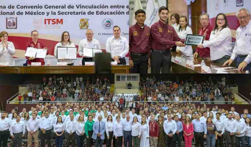 La firma de este compromiso se realizó en las instalaciones del Tecnológico de Matamoros, donde la secretaria de Educación en el estado, Lucía Aimé Castillo Pastor, y el director general del Tecnológico Nacional de México (TecNM), Ramón Jiménez López, signaron este convenio, acompañados por decenas de estudiantes del plantel, así como autoridades educativas federales, estatales y municipales.