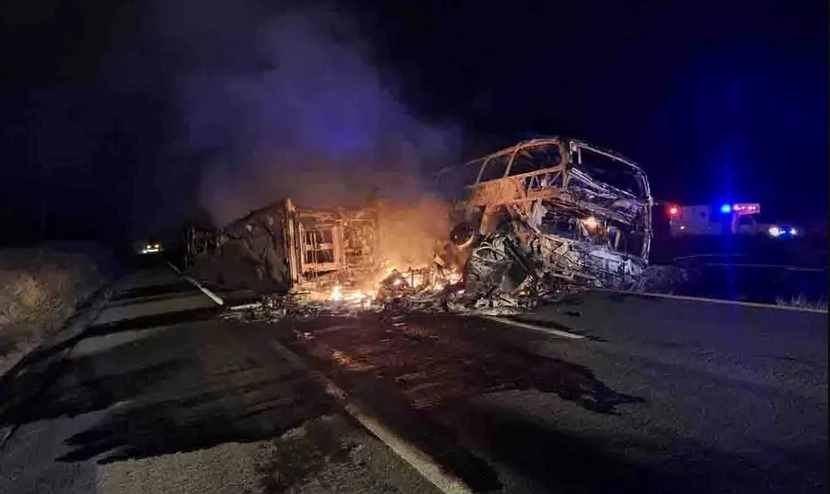 Al menos 19 personas murieron tras un choque entre un camión y un autobús de pasajeros ocurrido en el carril de sur a norte de la autopista Mazatlán-Culiacán. Sin embargo el medio local Reacción Informativa manejó “22 víctimas calcinadas y 20 personas rescatadas en la maxipista cerca de Elota”.