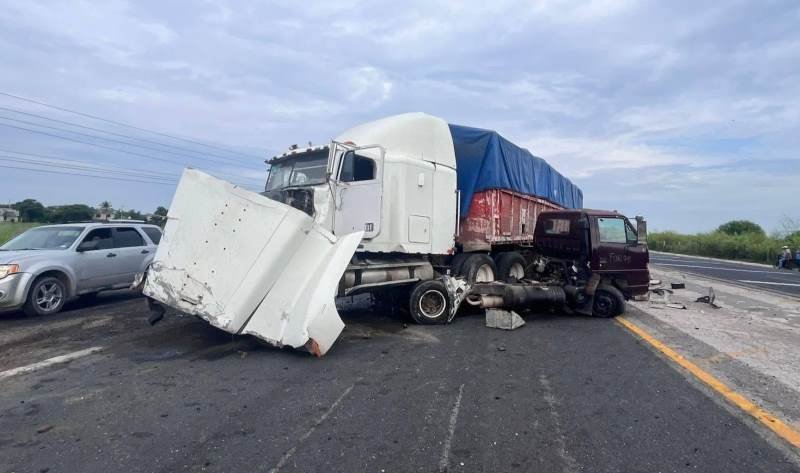 Derivado del percance entre un tractocamión y una camioneta, la circulación fue cerrada en ambos carriles de norte a sur de la Carretera Federal 80 tramo Tampico-Mante.