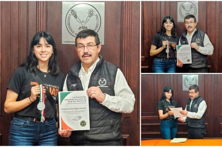 El rector Dámaso Anaya Alvarado felicitó a Regina Pedraza Lerma, esgrimista de la Universidad...